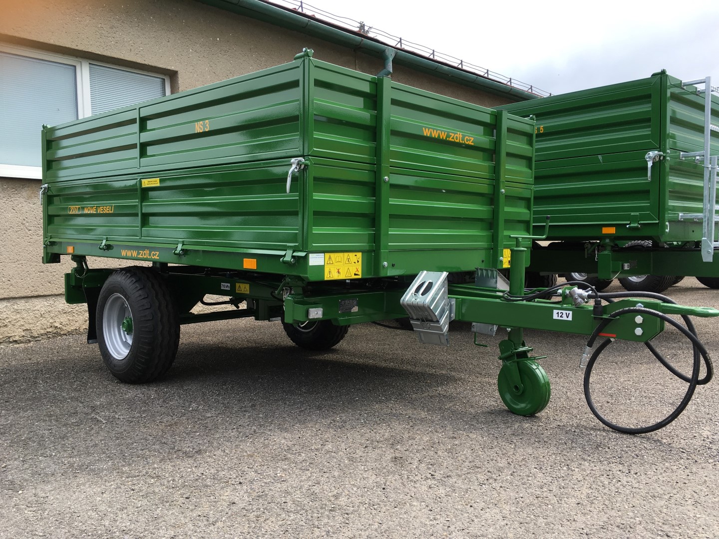 Traktorový náves – trojstranný sklápač je univerzálny automobil vhodný na malú farmu alebo do komunálnych služieb. Môže byť nasadený na prepravy obilia, sena, krmiva, senáže alebo kusového materiálu. Návesy dodávame v celkových váhach 4, 7 a 8 ton.